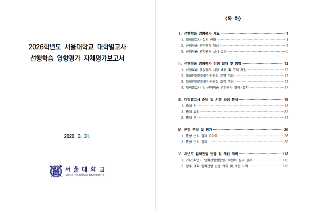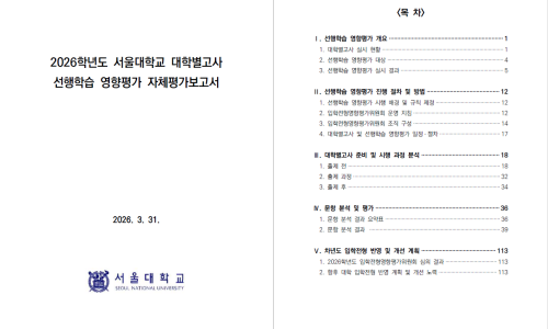 이 보고서는 ‘공교육정상화법’에 따라 대학이 매년 3월 말까지 입학처 홈페이지를 통해 공개하는 공식 문서로 각 대학의 논술고사, 면접·구술고사 문항이 고등학교 교육과정을 벗어나지 않았는지를 점검한 결과를 담고 있습니다.